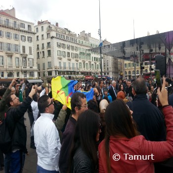 Des militants et militantes kabyles ont alors sorti et brandi le drapeau amazigh qui n’a pas été prévu par les organisateurs, ils ont chanté l’hymne national version Matoub, « Aɣuru » d’autre militants ont brandi aussi le drapeau Kabyle.