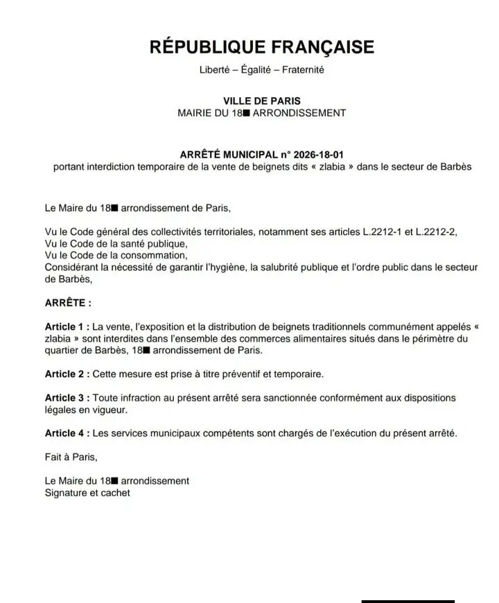 PARIS (TAMURT) – La crise politique qui oppose Alger et Paris semble désormais s’inviter jusque dans les assiettes. Le maire du 18ᵉ arrondissement de Paris, dont dépend administrativement le quartier de Barbès, très fréquenté par des ressortissants algériens, a pris un arrêté municipal suspendant la vente du beignet appelé zlabia.